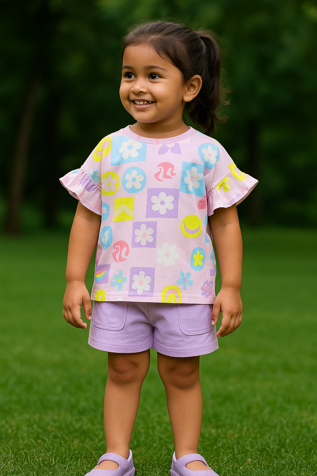 Drop shoulder frill Co-ord set - Lavender