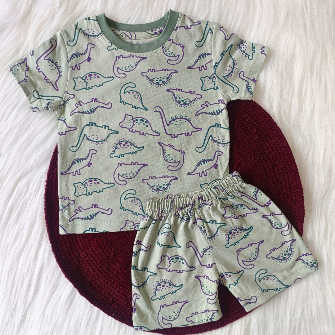 Top & shorts - Green dino